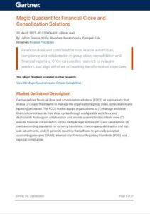 Gartner Magic Quadrant for Financial Close and Consolidation Solutions